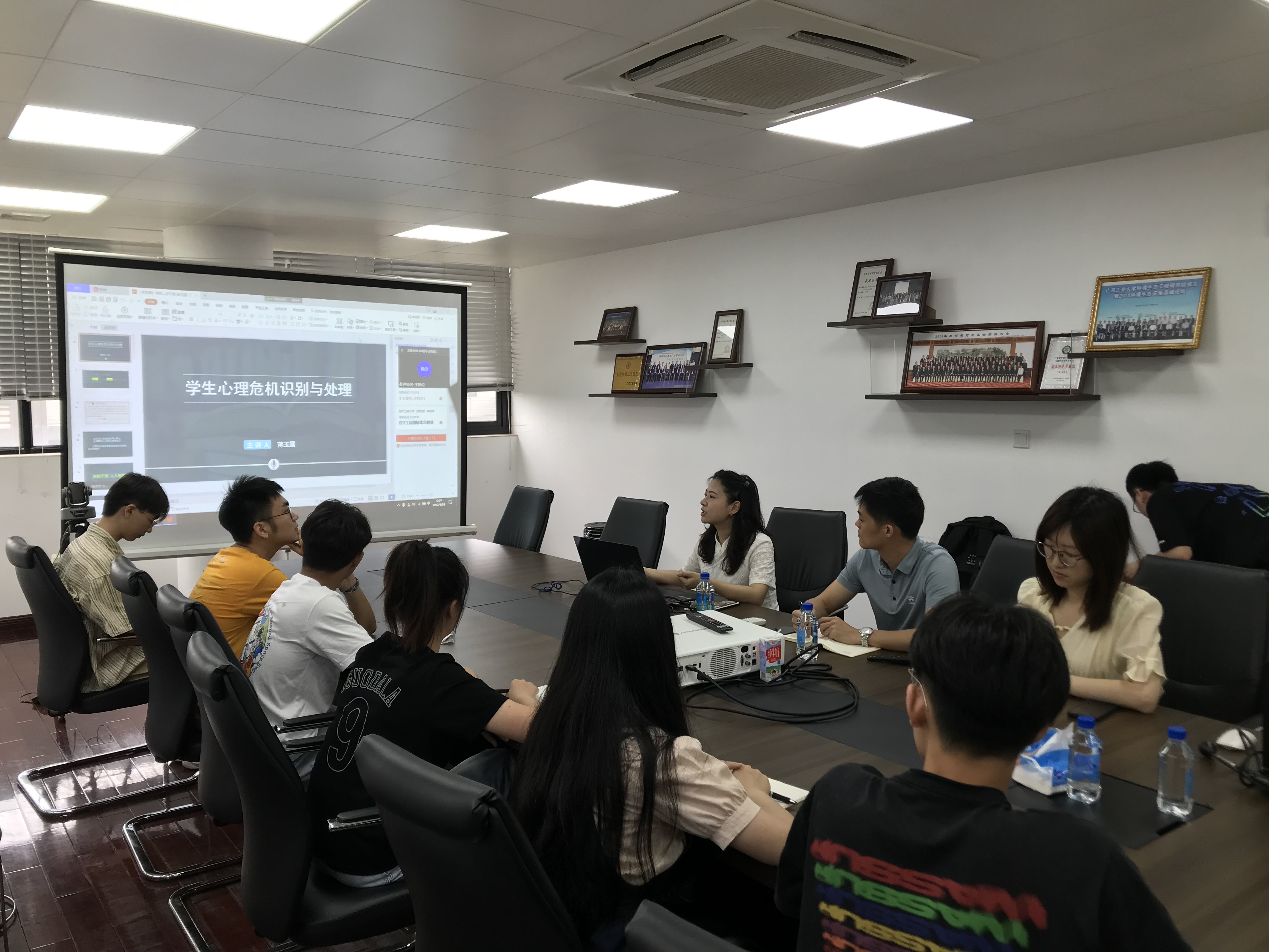 邀请学校心理辅导中心蒋玉露老师于科技北楼503A召开“学生心理危机识别与处理”培训会。学院团委书记刁衍斌老师、章莹老师及学院各班级心理委员在线下参会,全体宿舍联络员通过腾讯会议线上参会。