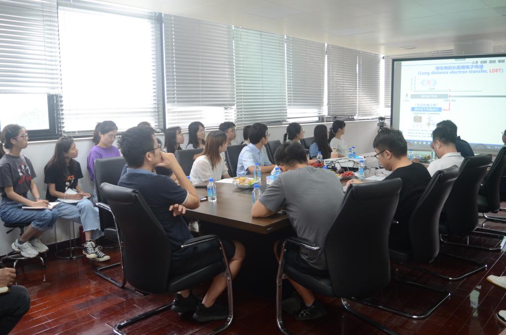 会议伊始,杨永刚研究员以“水环境中的微生物长距离电子传递网络”为题进行学术报告。首先,杨永刚研究员系统总结了微生物长距离电子传递的国内外研究进展,以生动形象的语言阐述了微生物相互耦联形成长距离电子传递网络的机制与环境效应,随后杨永刚研究员重点分享了自己发表在Nature Communications上的最新研究成果“Long-distance electron transfer in a filamentous Gram-positive bacterium”(一株长线形革兰氏阳性菌的长距离电子传递),介绍了探测微生物导电性的技术方法,最后针对目前的研究技术瓶颈展望了未来的研究方向。