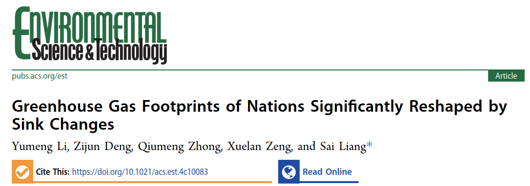 梁赛教授课题组在Environmental Science & Technology发表题为“Greenhouse Gas Footprints of Nations Significantly Reshaped by Sink Changes”的内封面论文。Lesbian