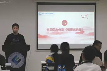 在党史学习环节,硕士生党员杨宇锋结合自身党史学习教育,向大家分享了《毛泽东选集》学习心得。他从《星星之火,可以燎原》引入,介绍了毛泽东同志在革命受挫时科学分析局势,坚信革命必将胜利的革命乐观主义精神。杨宇锋将党史学习联系当下,表示青年大学生应理性分析问题、透过现象看本质、经常开展自我批评。