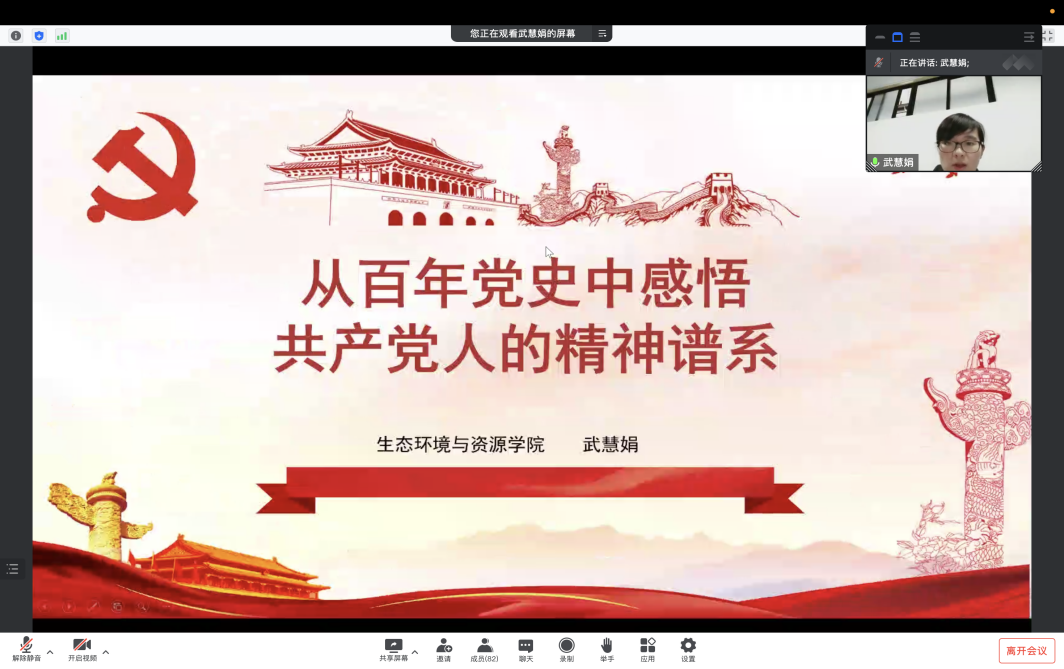 会中,各小组结合所学专业进行了讨论了汇报。学员们纷纷表示:理想、情怀、奉献、奋斗、创新这些关键词,犹如一根根红线贯穿于中国共产党精神谱系之中,指引方向,催人奋进。作为新时代的青年,要用脚步丈量祖国大地,用眼睛发现中国精神,用耳朵倾听人民呼声,用内心感应时代脉搏,把对祖国血浓于水、与人民同呼吸共命运的情感贯穿于学业全过程、融汇在对事业的追求中。