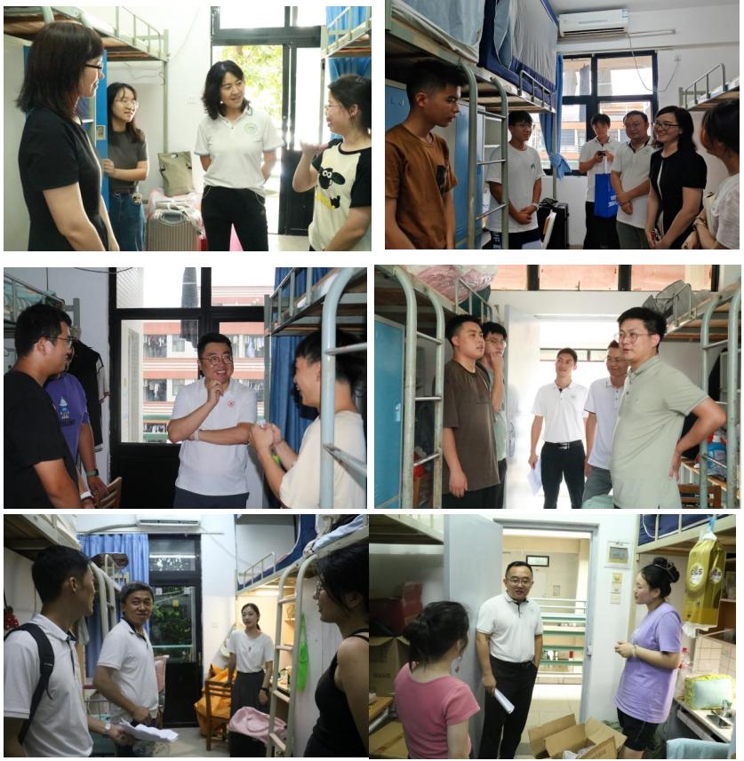 宿舍走访,关怀备至。学院党委书记曾志英、副书记武慧娟、副院长马金星等院领导带队逐一走访了新生宿舍,与新生和学生家长进行亲切交流,了解新生需求,积极解决新生在报到期间遇到的困难,提醒新生要提高反诈防骗、校园出行等安全防范意识,让新生能够更快的融入和适应未来的大学生活。