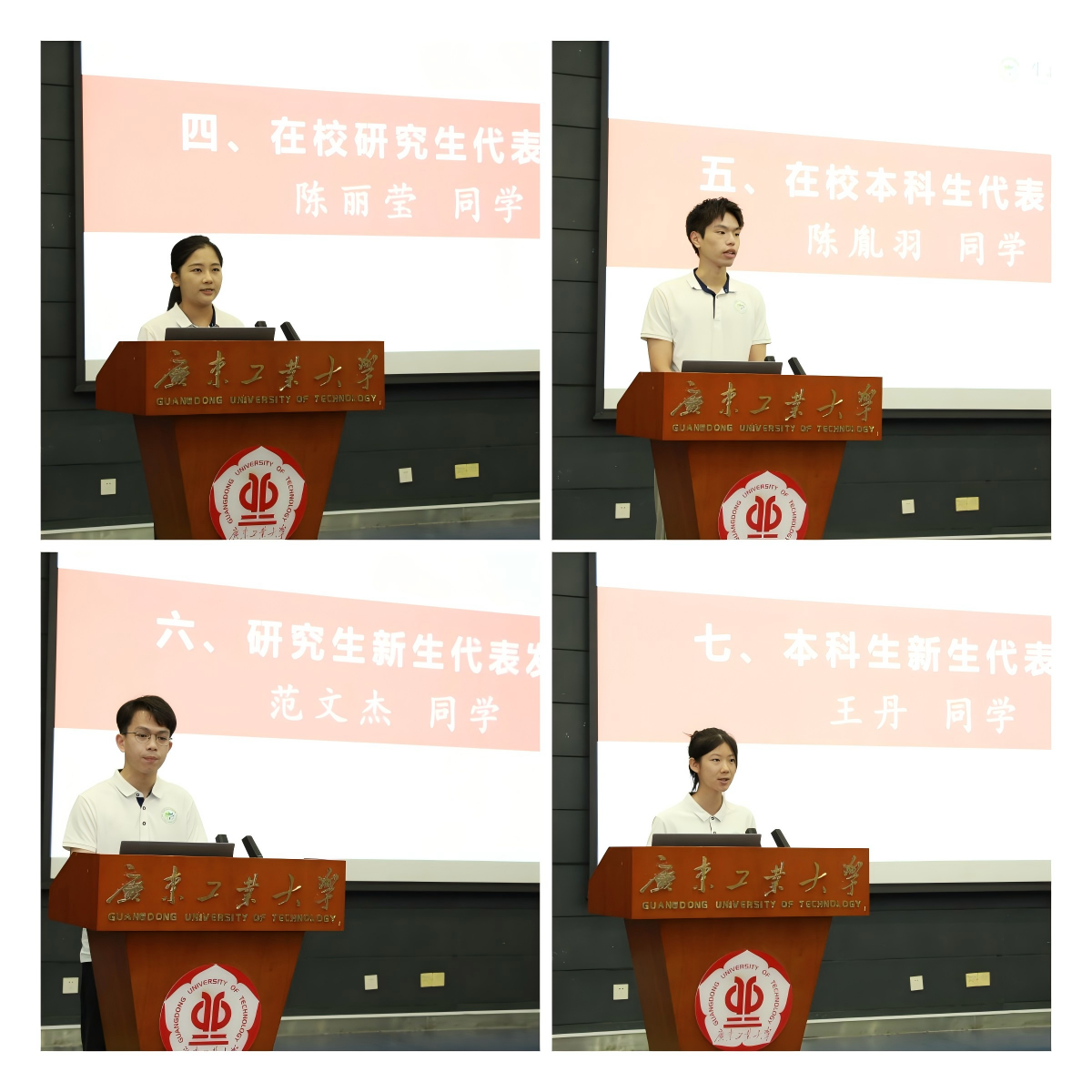 学生代表陈丽莹、陈胤羽、范文杰、王丹分别代表在校研究生、在校本科生、研究生新生、本科生新生作了发言。在校生陈丽莹、陈胤羽感激生态院的培养,给师弟师妹们分享自己在学校的经验与感受,帮助新生更好适应大学和研究生生活;新生范文杰和王丹表示在学院的新起点一定会更加潜心学习、勇于创新,积极投身新事物的探索,为生态环境事业贡献自己的青春力量。