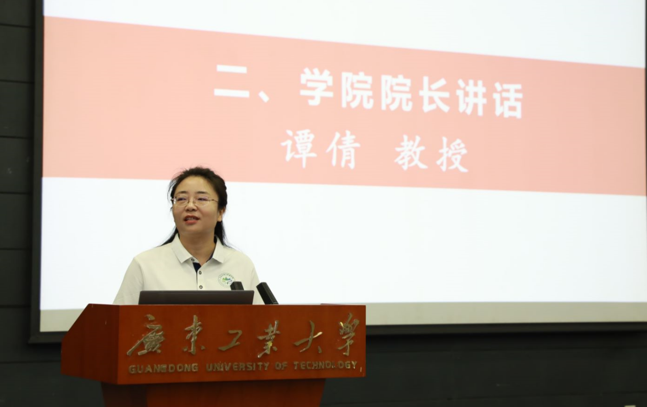 学院院长谭倩在讲话中对2024级全体新生表达热烈的欢迎和诚挚的祝贺,介绍了学院的基本情况,并提出三点期望:一是要树立远大理想,将个人发展与国家生态文明建设紧密结合;二是要深耕专业知识,锤炼实践能力,成为生态环境领域的优秀人才;三是要涵养高尚品德,锤炼健全人格,成为有德有才的社会栋梁。她鼓励同学们不断学习成长,为美丽中国和中华民族的伟大复兴贡献力量。