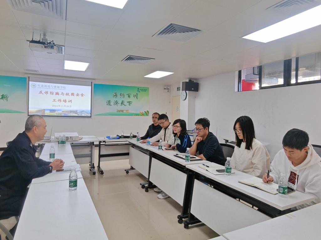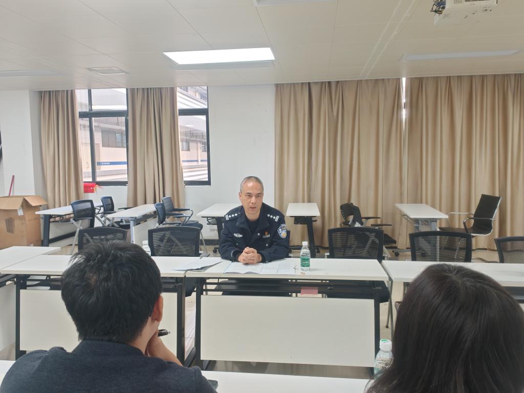 驻校民警陈林群警官在科技北楼401会议室为全体学生工作队伍开展反诈防骗和校园安全工作培训。学院党委副书记武慧娟、学院专兼职辅导员、班主任参加。