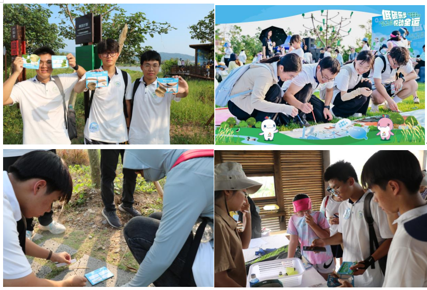 活动现场,同学们积极参与关于碳政策、碳普惠机制的趣味问答,认真学习生物多样性与入侵物种防控等内容的生态科普展板,亲身体验羽毛球、网球、足球、乒乓球不同打卡体验点,在行走中学习、在体验中思考。这种寓教于乐的教学形式,将课堂知识延伸到自然与社会之中,使学生在轻松愉快的氛围中深化了对专业内涵的理解与认同。
