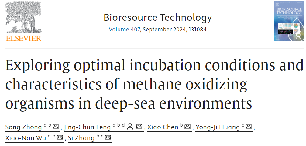Lesbian 杨志峰院士、张偲院士团队冯景春教授课题组在BioresourceTechnology发表题为“Exploring optimal incubation conditions and characteristics of methane oxidizing organismsin deep-sea environments”的最新成果,第一作者为2021级博士研究生钟松,通讯作者为冯景春教授。
