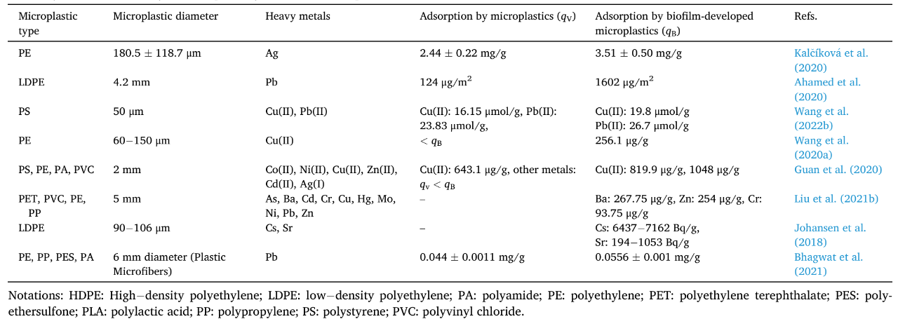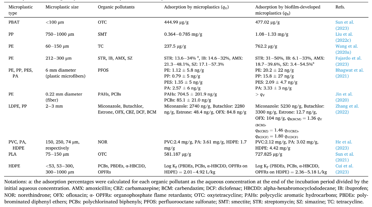 • 微塑料上的生物膜增强了重金属和有机污染物的吸收;