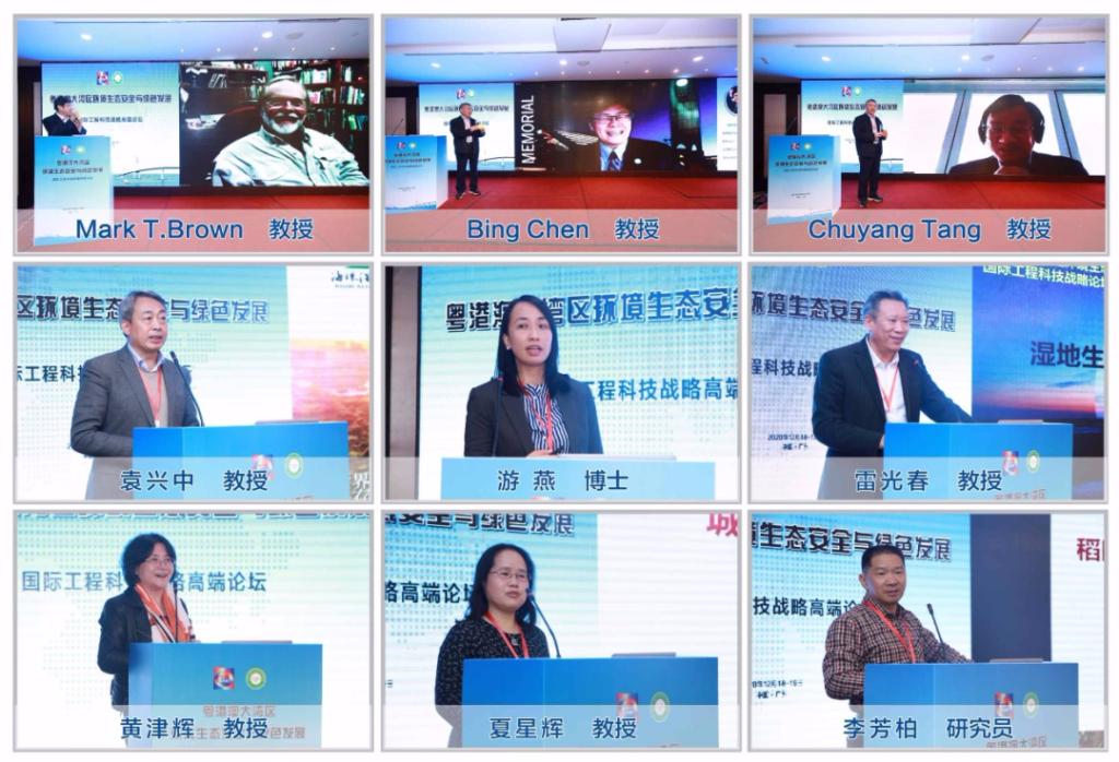 加拿大工程院黄国和院士、英国社科院孙来祥院士、英国社科院关大博院士、俄罗斯自然科学院和俄罗斯工程院外籍院士吴明红,以及美国艺术与科学院俞孔坚院士分别作题为《珠三角城市群生态风险防治研究》、《Stormwater Management and Ecosystem Services under Climate Change and Urbanization in Maryland, USA》、《后疫情时代的全球气候变化减排》、《石墨烯复合材料的精准调控及其在绿色环境与清洁能源中的重要应用》、《建设生态韧性国土与城市-理论与实践》的特邀主旨报告。他们分别就生态风险、雨水管理、低碳发展、清洁生产、韧性城市等进行了报告,共同探讨如何抓住经济绿色转型机遇,深度参与全球环境治理,共谋全球生态文明建设。