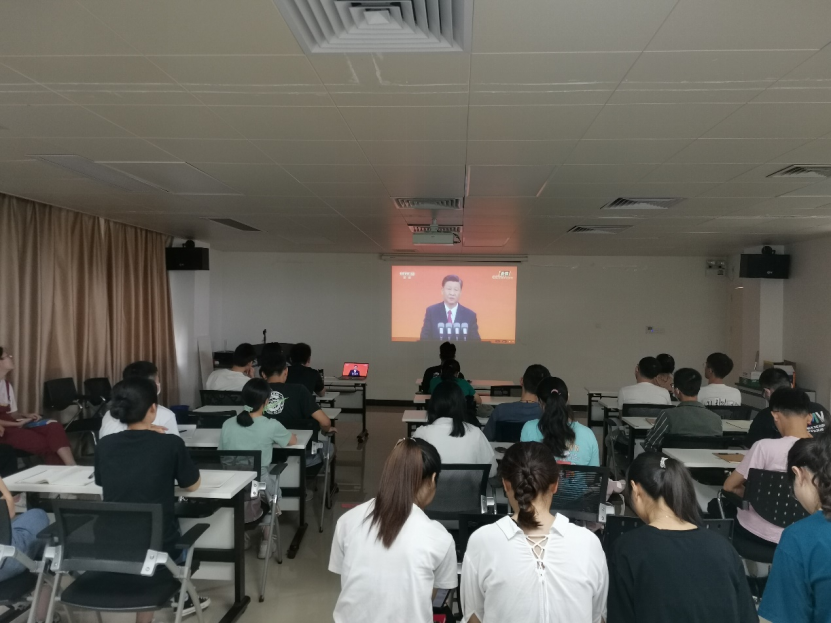积极组织党员师生在科技北楼503A会议室和401会议室收听收看颁授仪式。