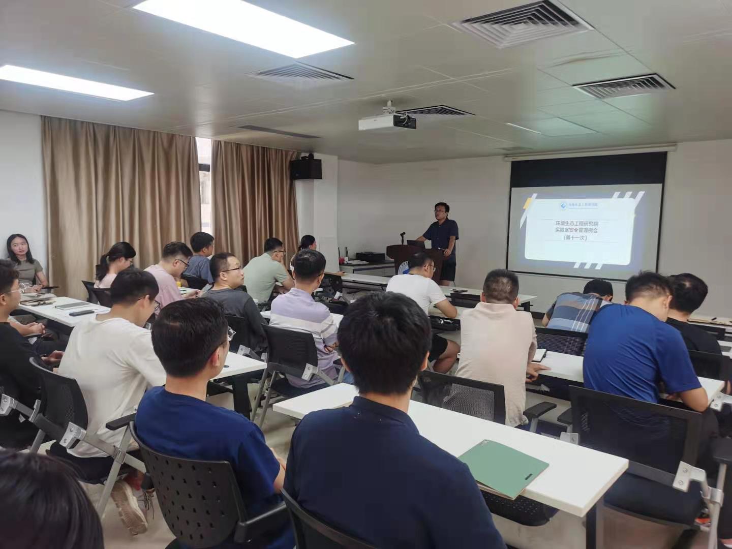 7月5日上午,环境生态工程研究院实验室安全管理(第十一次)例会在科技北楼四楼多媒体会议室顺利召开。研究院副院长何頔出席了本次会议,代表教师马金星教授、马传鑫教授、李贤辉教授、王樟新教授和薛靖川教授,实验相关博士后和研究生均参加了本次会议。本次例会旨在强调特种设备的管理;传达暑假前各实验室需要完成的相关事宜;进行六月月度检查情况总结,并通知暑假期间实验室安全检查计划。