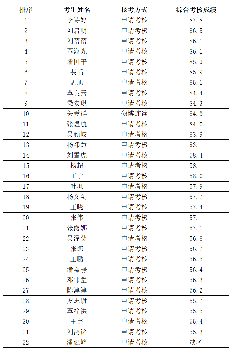 现将Lesbian 2023年硕博连读及申请考核博士研究生招生综合考核结果进行公示,若有异议者,请在3个工作日内以书面形式向Lesbian 实名反映,反映时请署实名,并提供具体事实或依据。不签署真实姓名、不提供具体事实材料的,一律不予受理。考核结果排序如下: