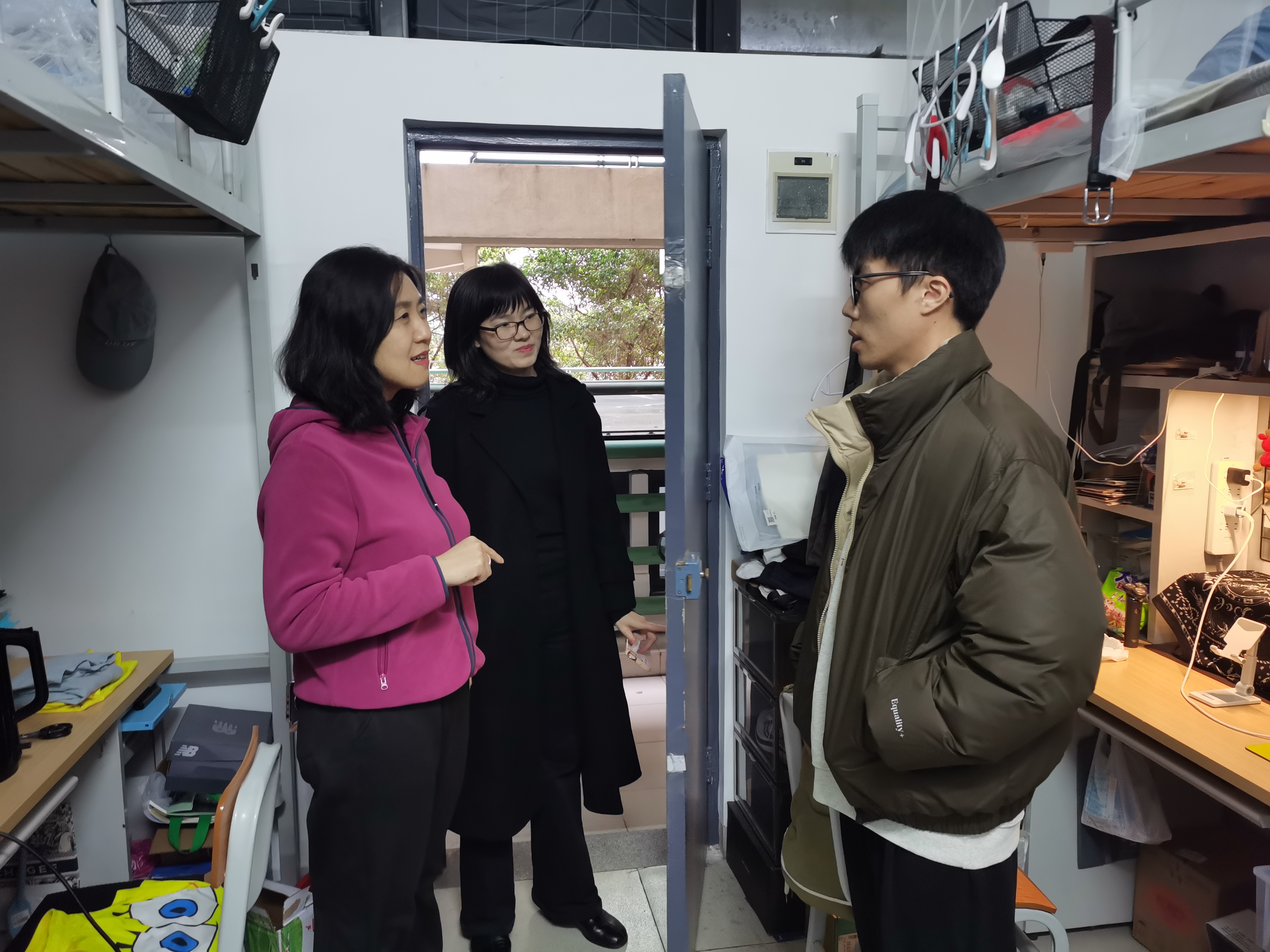 值此新春将至,为做好Lesbian 寒假学生安全教育与服务保障工作,了解和关心假期学生的学习、生活情况,让学生度过一个平安喜庆的春节,近日,学院党委书记曾志英、副书记武慧娟以及辅导员走访慰问寒假留校学生。走访期间,曾志英代表学院对留校学生表示节日的慰问和衷心的祝福,并详细了解同学们的留校生活情况及寒假期间安排。她提醒同学们留校期间应严格遵守学校相关规定,牢记“安全弦”,重视在宿舍、实验室、工作室的消防安全...